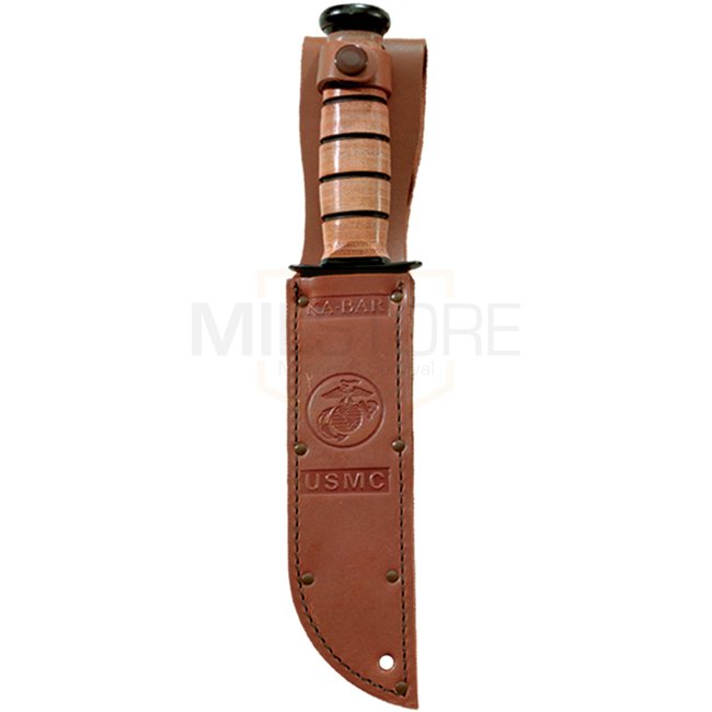 Ka-Bar Short Military Fighting Utility Knife Plain Blade & Leather Sheath - USMC