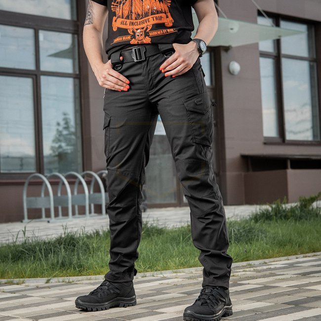 M-Tac Aggressor Flex Pants Lady - Black - 34/34: Light, water and dirt resistant trousers made of cotton, polyester and elastane, designed for comfort and stylish appearance in various activities.