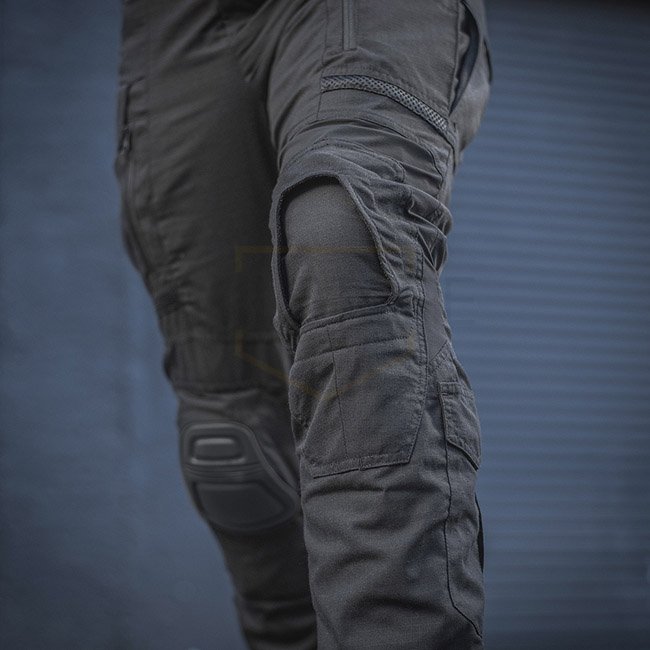 The trousers are equipped with a large number of pockets, both utilitarian and special: there are ten of them. Standard trouser side pockets have reinforcement at the bottom for attaching a knife or flashlight clip. The back welt pockets close by zipper.