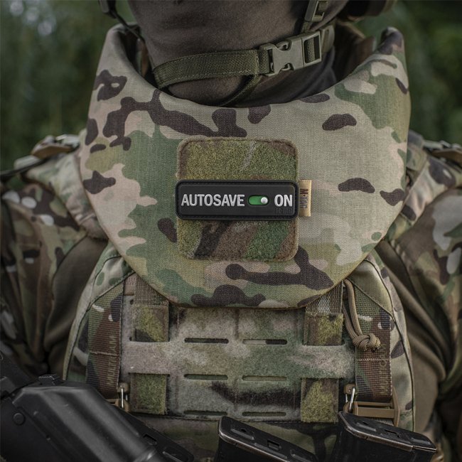 M-Tac Autosave Rubber Patch - Black. PVC front material and hook surface back. Dimensions: 80x25mm.