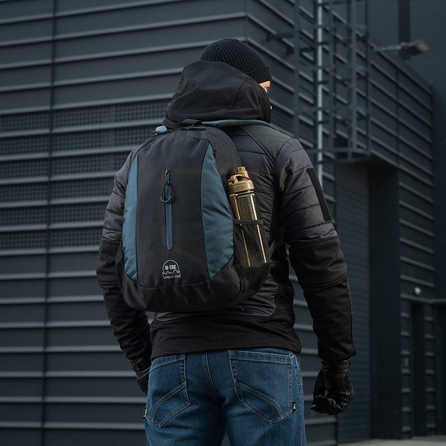 There are also dedicated pockets on the side for water bottles. Both regular plastic 1-liter bottles and Nalgene flasks will fit perfectly there.