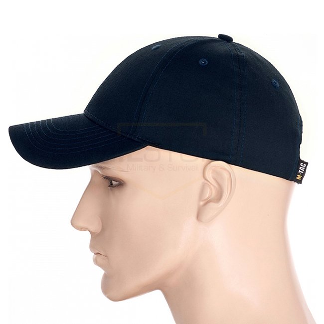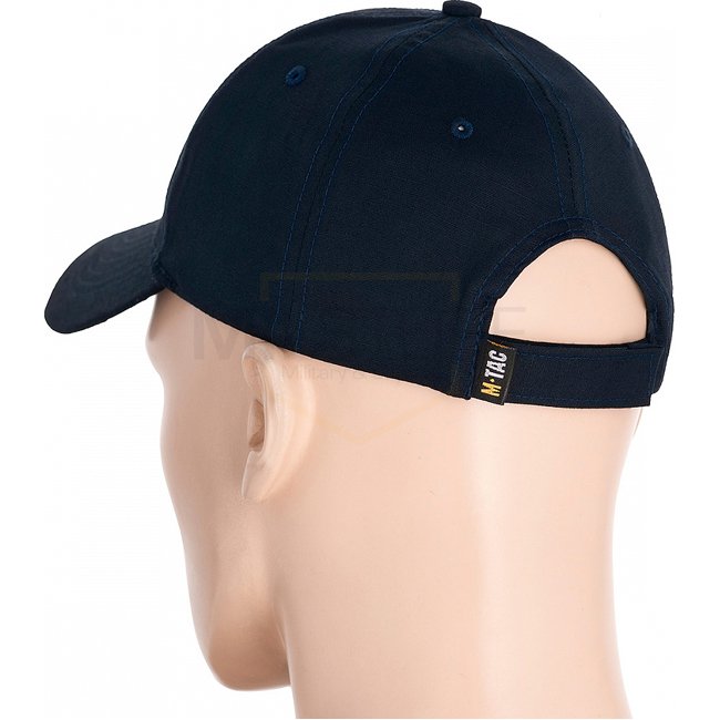 M-Tac Baseball Cap Flex Rip-Stop in Dark Navy Blue - S/M. Lightweight, water- and mud-protective, adjustable with Velcro, with ventilation holes. Material: 63% polyester / 35% cotton / 2% spandex.