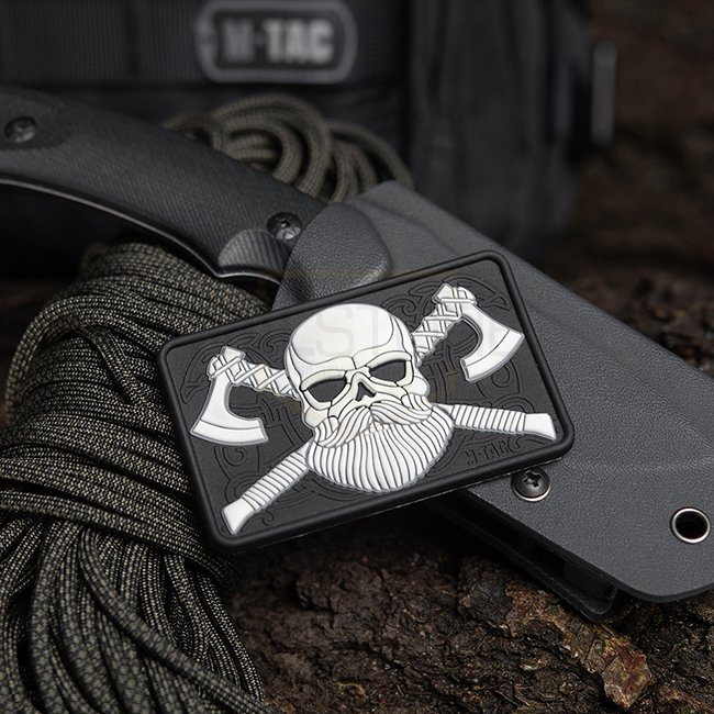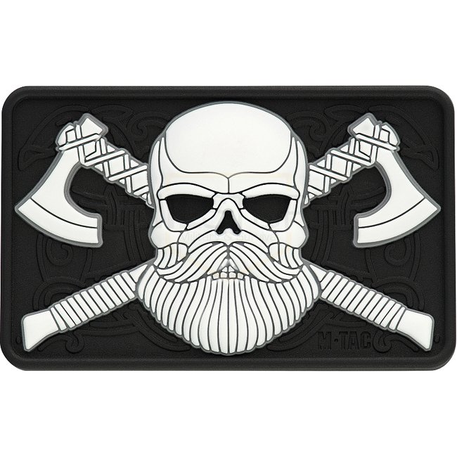 M-Tac Bearded Skull 3D Rubber Patch - White. Front: Rubber, Back: Hook surface. Dimensions: 80 x 50mm.