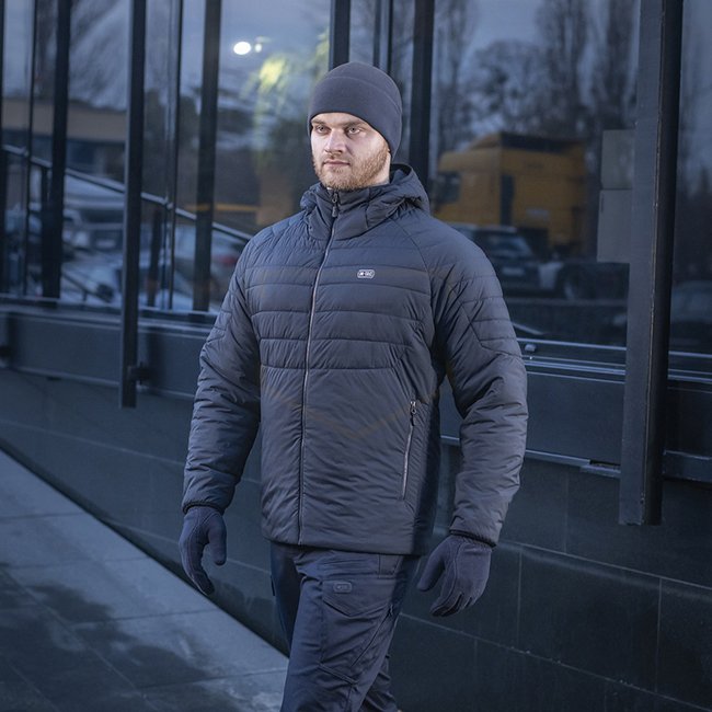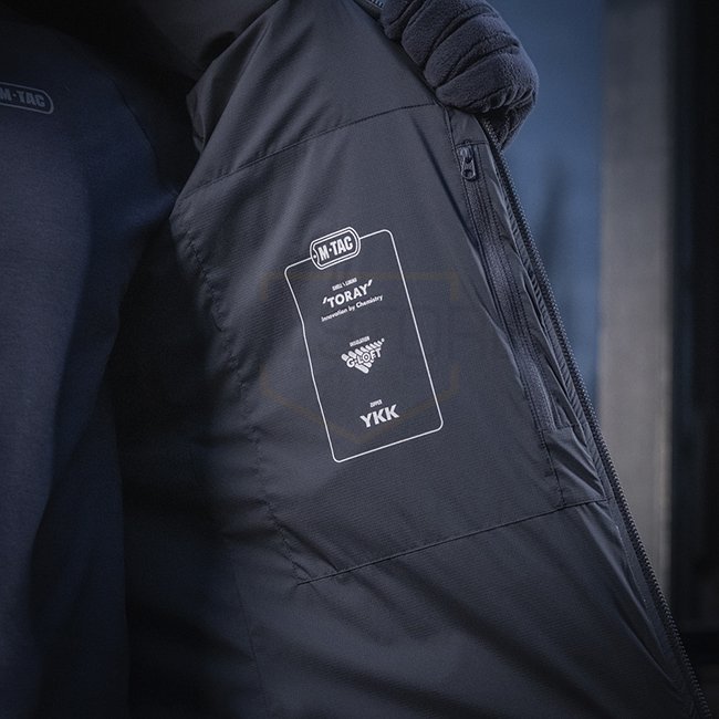 The M-Tac Berserk Jacket in Dark Navy Blue, size 2XL, combines innovative design and top-quality materials. Made of lightweight, water-repellent nylon from Toray with Austrian G-Loft insulation, offering warmth and moisture-wicking properties. Features zi