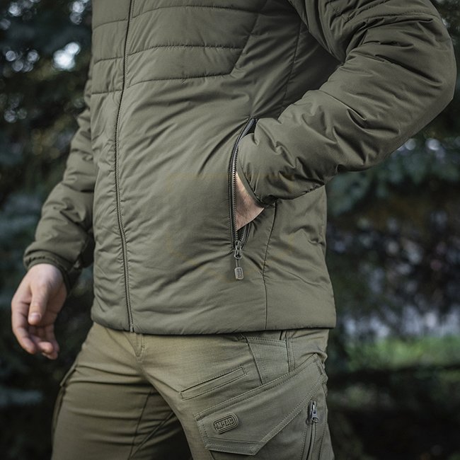 Made of lightweight, breathable water-repellent nylon fabric from the Japanese company Toray. The jacket is insulated with an innovative Austrian G-Loft insulation with a density of 100g / m2, which has high thermal insulation qualities and easily evaporates moisture when wet. Also, this material organically combines the softness of down and the strength of synthetic fibers.