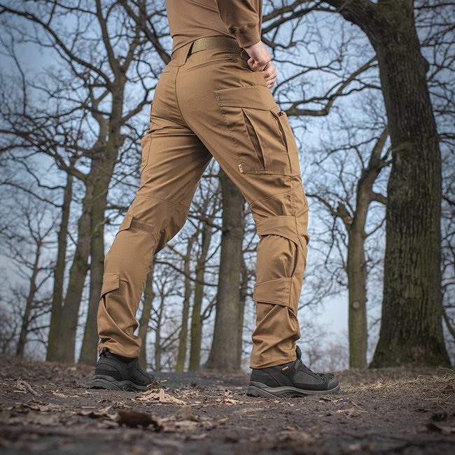 The M-Tac Conquistador Tactical Flex Pants Gen.I in Coyote color and size 40/32 are versatile outdoor trousers combining durability with comfort. Made of PolyCotton Ripstop Flex, these pants are highly wear-resistant while allowing air circulation for imp