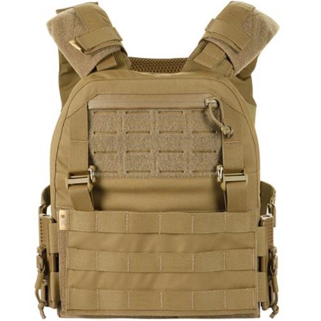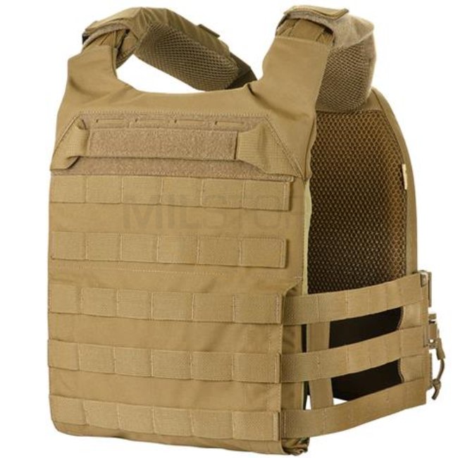 M-Tac Cuirass Plate Carrier QRS Gen.II - Coyote: Evolutionary stage in plate carrier development with quick release system, modular pouches, and skeletonized cummerbund. Compatible with SAPI & ESAPI size Medium. Material: Cordura 500D