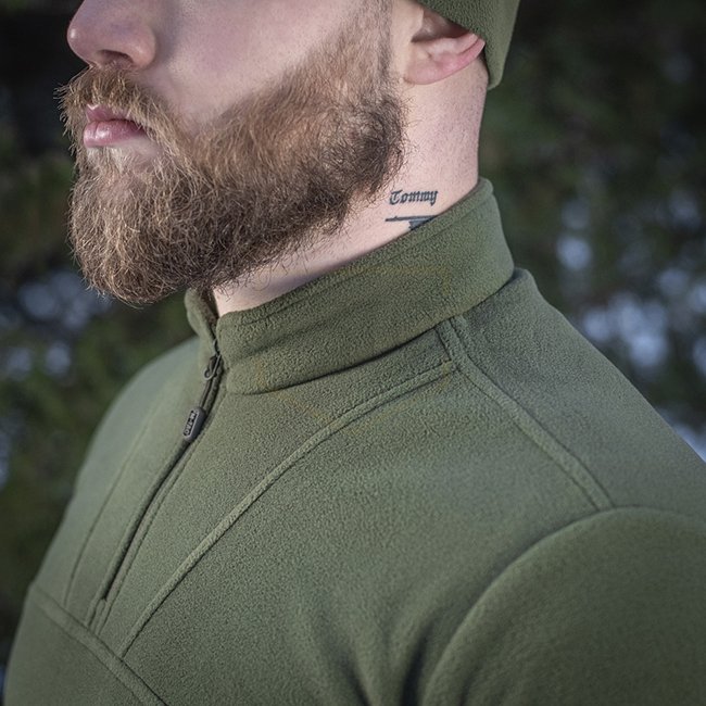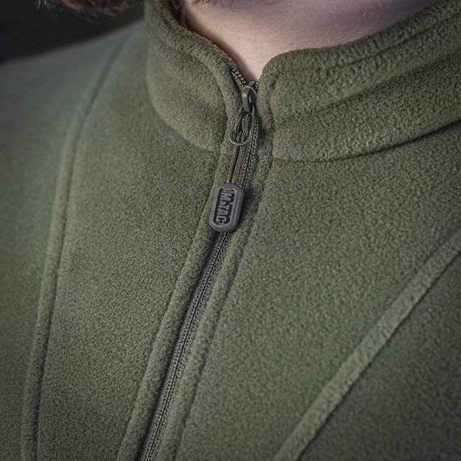 M-Tac Delta Polartec Fleece Jacket in Army Olive size XL has thumb holes in the sleeves for warm palms and free fingers. Pleasant to body, fits perfectly, does not deform after washing, and dries quickly. Ideal for cold season as a second layer of thermal
