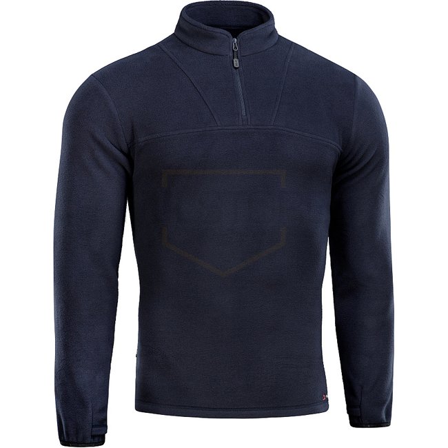 The M-Tac Delta Polartec Fleece Jacket in Dark Navy Blue XS size features thumb holes in the sleeves for warming the palms while keeping fingers free. This pullover is comfortable, figure-flattering, and maintains its shape and quick-drying properties aft