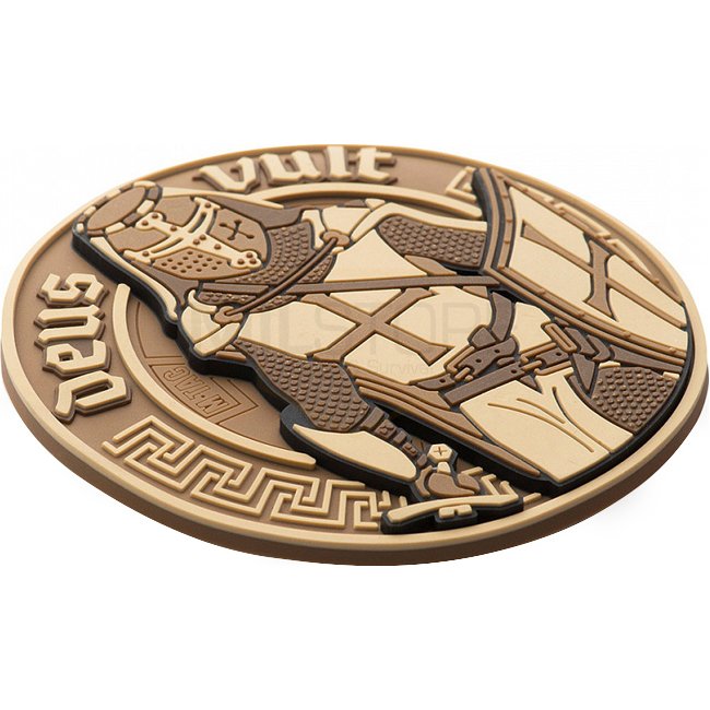 M-Tac Deus Vult 3D Rubber Patch - Coyote. Front: Rubber, Back: Hook surface. Size: 80x80 mm.