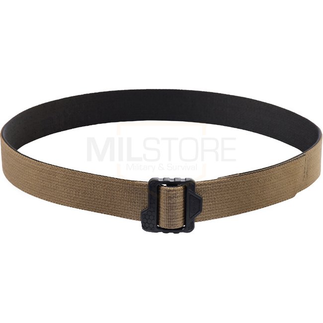 The Double Duty Tactical Belt Hex is designed for continuous and long-term use. The belt consists of two durable nylon webbings stitched together with a strong thread. The density of the material allows you to wear holsters and pouches on a belt. It is fixed on the waist with a universal buckle made of durable polymer.