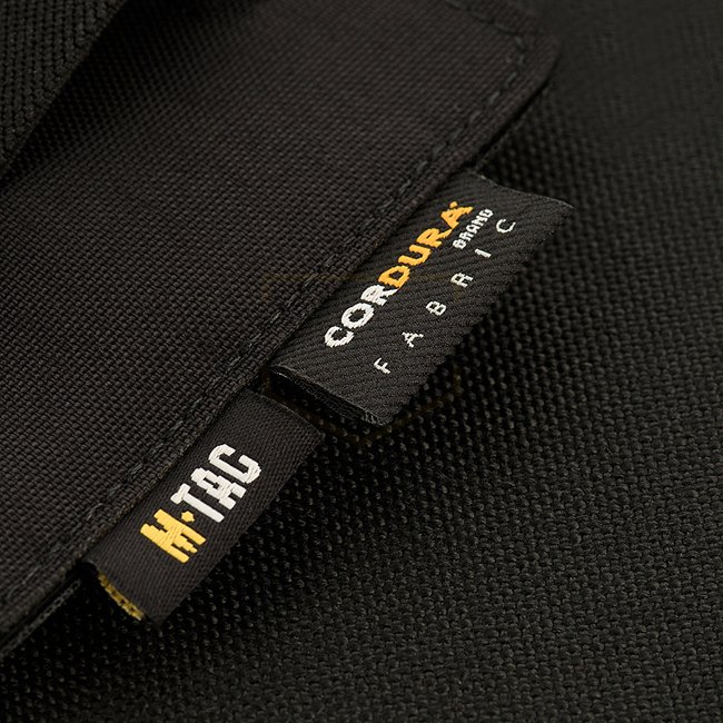 M-Tac Double Magazine Pouch Hook Backed - Black is a versatile accessory for carrying two pistol magazines or similar-sized items like a spray or multitool. Made of durable Cordura 1000D, this pouch has adjustable loops and Velcro fastening for easy attac