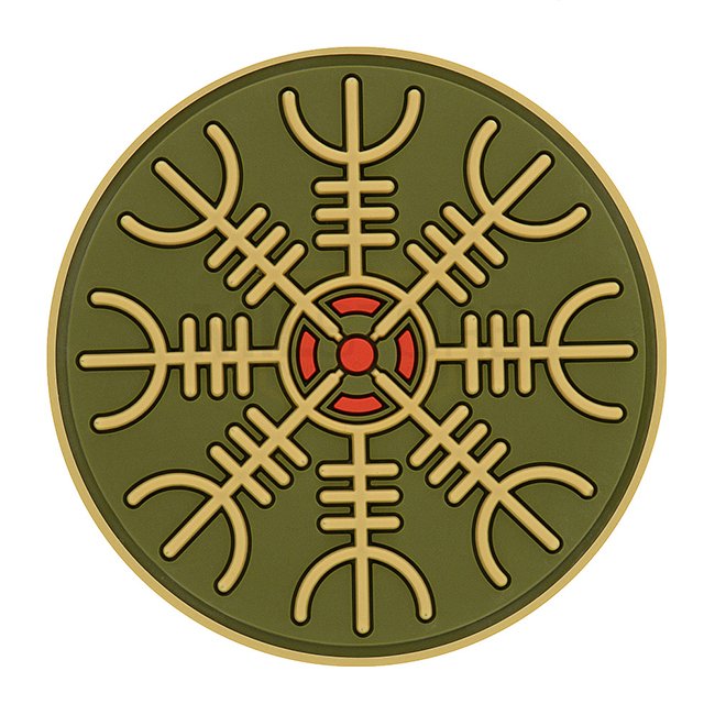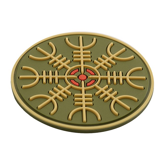 M-Tac Egeshelm Rubber Patch in Olive color, made with front side of rubber and back side featuring hook surface. Measures 55 x 55 mm.