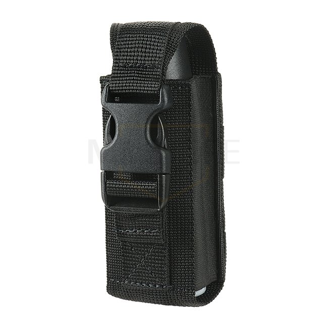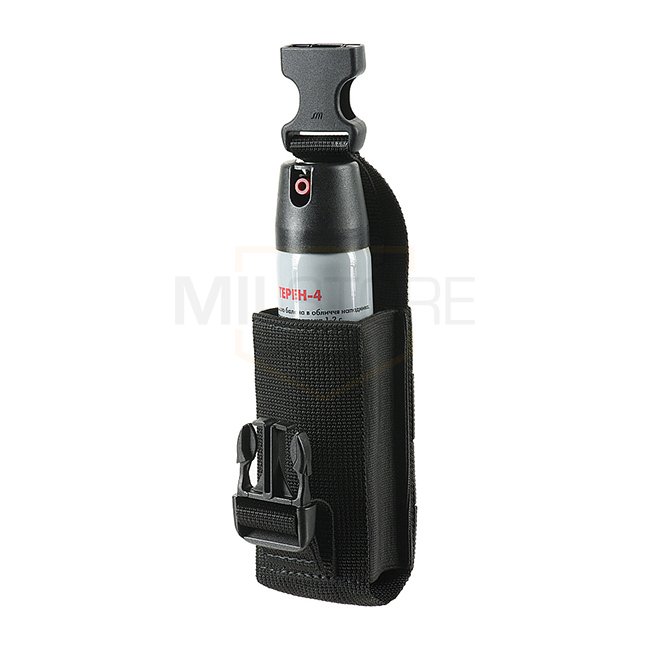 The self-defense pouch locks in the upright position and is easy to remove. It can also be adjusted to the size of your spray. The product attaches to your belt or gear with a MOLLE interface.