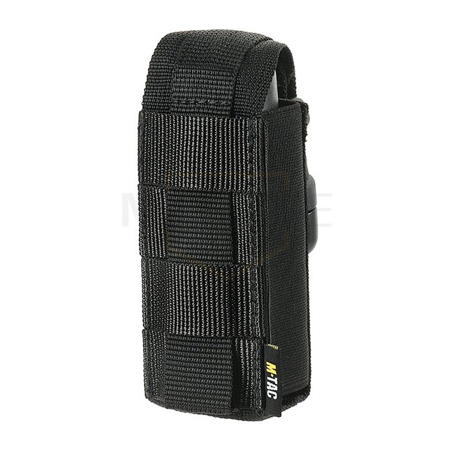 The M-Tac Gas Can Pouch Vertical in Black offers quick access to protective gear. Self-defense pouch adjusts to fit spray size, locks upright, and attaches easily to belt or gear with MOLLE interface.
