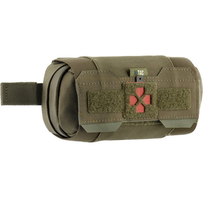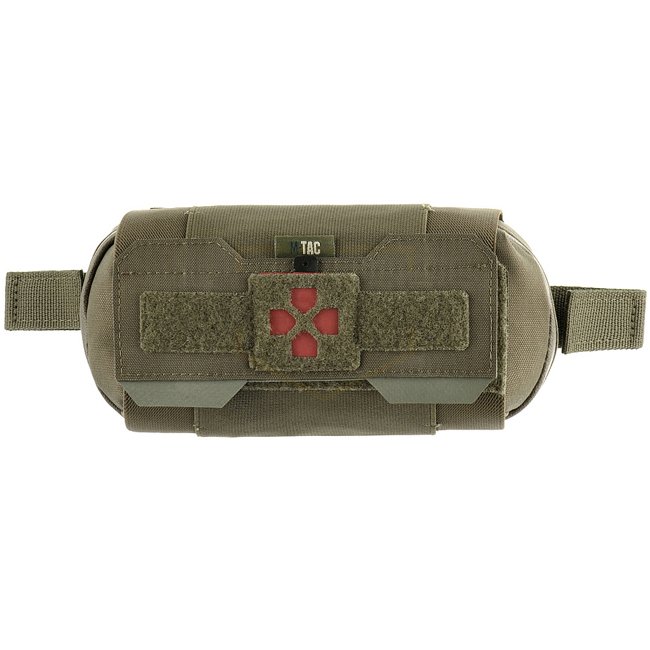 The M-Tac Horizontal Medical Pouch Elite in Ranger Green is a versatile first aid kit with Cordura 500D organizer, waterproof YKK zipper, and an attachable MOLLE base. Ideal for quick access and organization of medical supplies.
