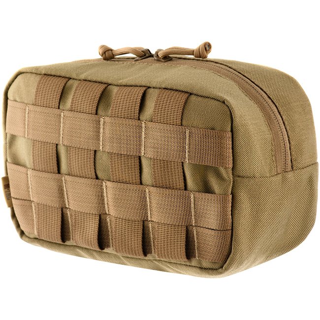 A medium-sized horizontal utility pouch. The main feature of this utility pouch is multifunctionality. Its main purpose is to carry and store small items; it can also be used to keep medical supplies.
