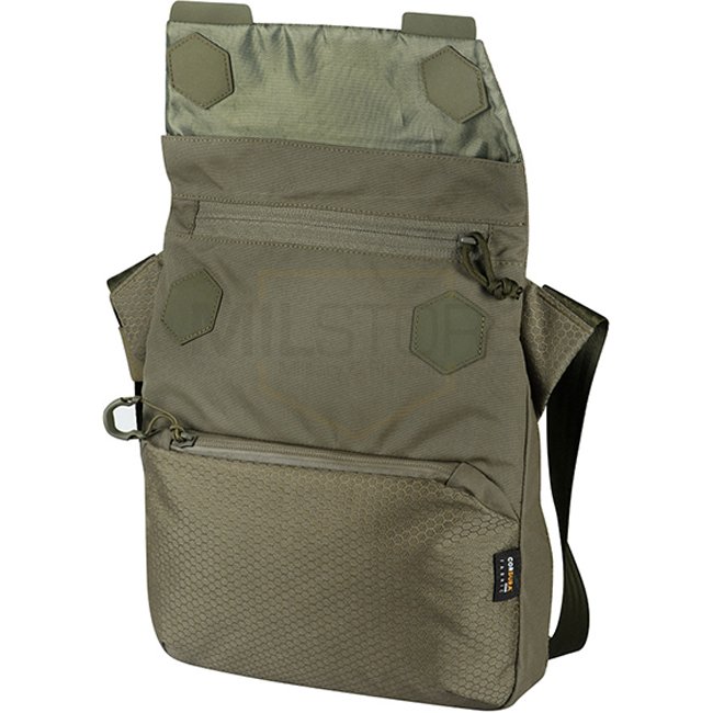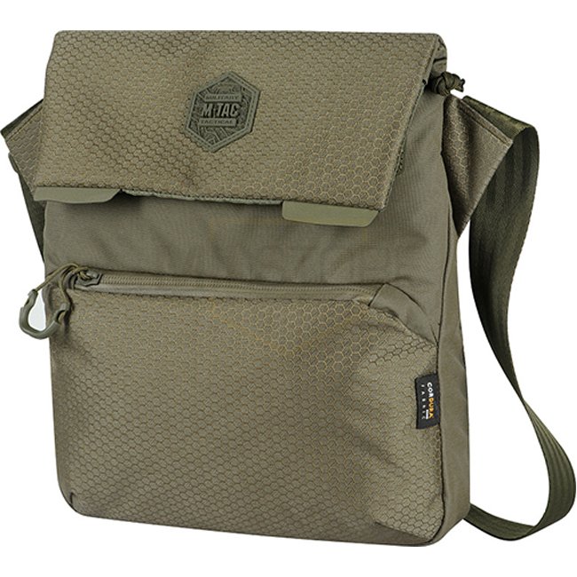 M-Tac Konvert Bag Elite in Ranger Green is a versatile and comfortable tablet bag made of Cordura 500D and Cordura Hex 1000D for durability. Features adjustable shoulder strap, magnetic closure, deep compartment, and AquaGuard zipper. Includes EDC organiz