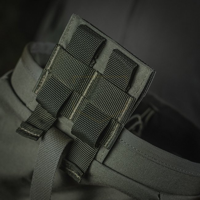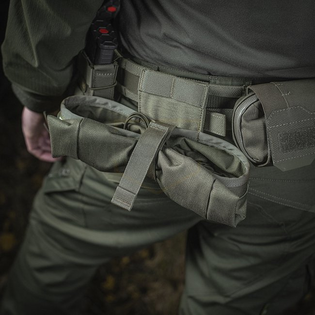 The pouch is intended for blind replacement of magazines in high-stress situations. The special design prevents magazines and other equipment from falling out of the bag. The neck of the bag is equipped with a quick release system, which, if necessary, allows you to quickly and tightly close the pouch.