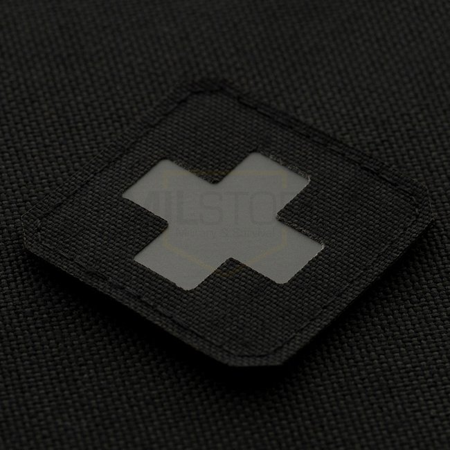 M-Tac Medic Cross Laser Cut Patch - Black / Grey in Cordura 500D material, with hook surface on the back. Small size of 45 x 45 mm for versatile use.