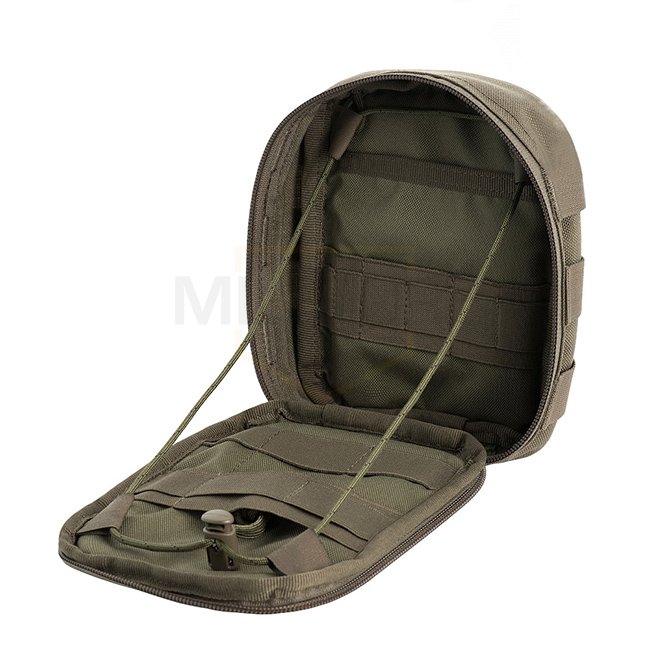 This multi-purpose pouch can be used to carry a first aid kit, an EDC kit (pen, knife, flashlight, notebook, multitool, etc.) or an individual survival kit. It can be attached to backpacks and vests using the MOLLE system and opens to a full 90 degrees.