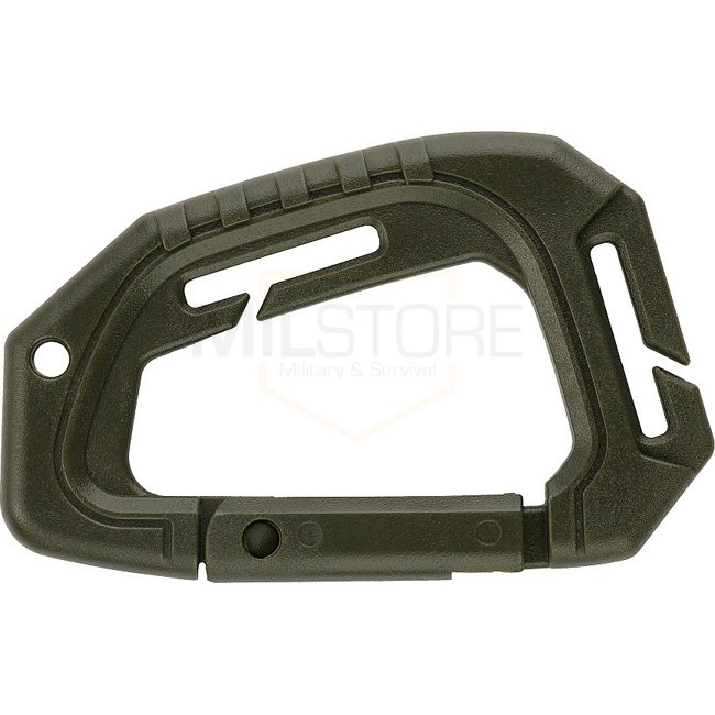 M-Tac Plastic Tactical Carabiner - Olive. Made of durable ABS plastic, measuring 93 x 55 mm. Ideal for outdoor activities.