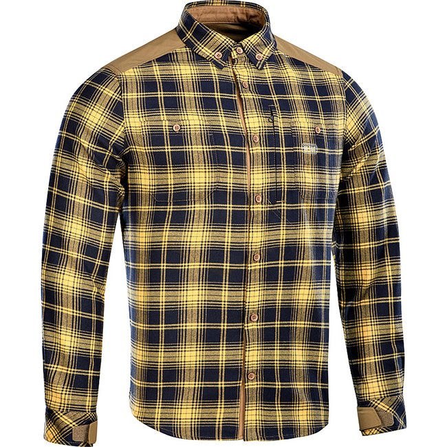 The M-Tac Redneck Shirt in Navy Blue and Yellow, size 3XL, is the ultimate versatile tactical plaid shirt for any life situation. Perfect for work or casual city strolls, it features wind and moisture-proof shoulder reinforcements. Classic look, figure-fl