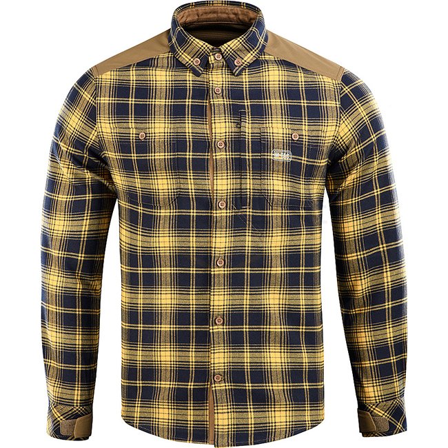 M-Tac Redneck Shirt - Navy Blue / Yellow - M - Regular: Versatile tactical plaid shirt perfect for work or city walks. US-made wind and moisture-proof shoulder reinforcements, classic fit with adjustable cuffs. Must-have for any wardrobe, suitable for bus