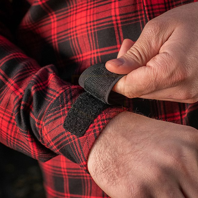 M-Tac Redneck Shirt - Red / Black, perfect for work or city strolls. US-made, wind and moisture-proof shoulder reinforcements. Classic look, Velcro straps on sleeves. Must-have for wardrobe, suitable for business meetings and casual wear. Material: 70% po