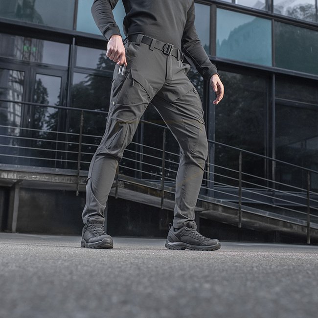 Lots of pockets allow you to transport the required minimum of things. Thanks to the thoughtful cut, the trousers don't restrict freedom of movement and can easily perform tasks of both tactical and casual wear. The ultra-modern material, unusual design, and functionality of this model will definitely attract your attention. Perfect for warm to hot seasons.