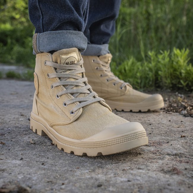 M-Tac Sneakers - Khaki - 42 are classic rubber sneakers with a simple design and durable construction. Ideal for everyday wear and sports, these sneakers feature 6 metallized eyelets, protective back overlay, wide polyester laces, vulcanized rubber outsol