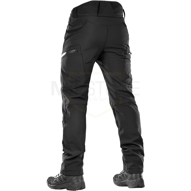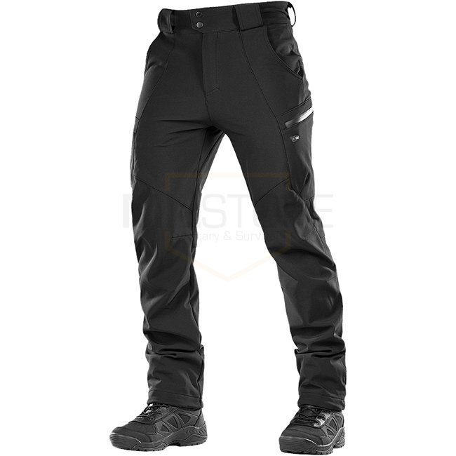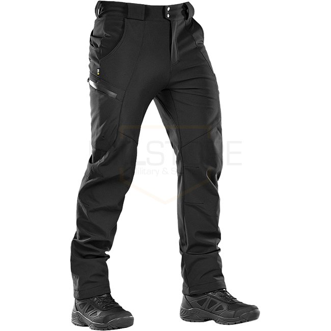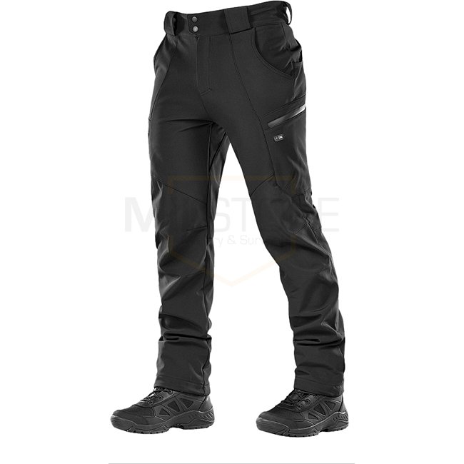 M-Tac Soft Shell Winter Pants - Black - XS: Wind and moisture resistant soft shell pants with fleece lining for added warmth. Ideal for off-season and winter activities. Made of 100% polyester.