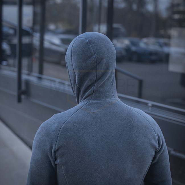 Made of a premium Polartec 200 fleece. This material is durable and pleasant to the body, retains warmth well, and doesn't pill. The high collar of the hood will reliably protect from cold and wind. The raglan sleeves are specially cut for comfort and freedom of movement. This cut helps to achieve an unusual shoulder shape, resulting in a stylish, rounded silhouette. Flat seams guarantee comfort and don't chafe.