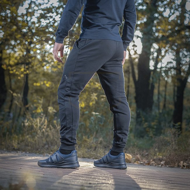 M-Tac Stealth Cotton Pants in Dark Navy Blue, XS Regular. 100% cotton ensures comfort during physical activities. Smart cut for movement freedom. Elastic band for secure fit. Stylish and practical when paired with the Cotton Hoodie.