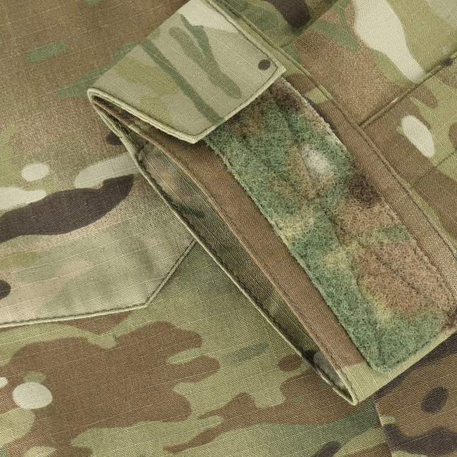 Made from lightweight US Nyco material that is about three times more tear-resistant, 10 times more breathable, and dries faster than regular Nyco fabric. The jacket has a free cut and high-quality fittings. Fastens with a central zipper covered by a Velcro flap. On the flap a Velcro panel with slots for attaching glasses can be found. This model is equipped with two large chest pockets, which are covered with a flap. On the sleeves there are hidden pockets with vertical entrances for easy access to their contents. Also on the left sleeve, an added compartments for chemical light, pens, pencils and markers is located. Cuffs are adjustable with Velcro. Chest and arm Velcro panels are designed to attach name tags and patches.