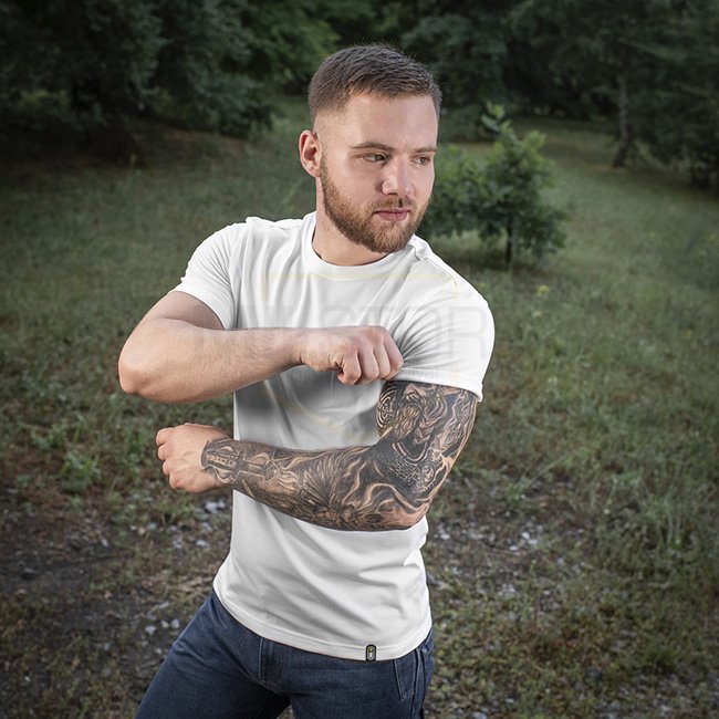 The T-Shirt 93/7 can withstand a lot of washes and does not lose its shape. A T-shirt is a must-have for any man's wardrobe. The area of __ application of this T-shirts is wide - from everyday wear to use as uniform for military units and security forces and for people who lead an active lifestyle like hunting, fishing, sports or travel. Thin, elastic, and high-quality knitwear give a complete feeling of comfort.