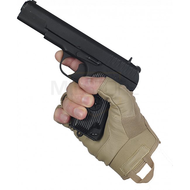 M-Tac Tactical Assault Gloves Fingerless Mk.4 in Khaki are perfect for weapon handling, featuring reinforced palm pad made of genuine leather for injury prevention.