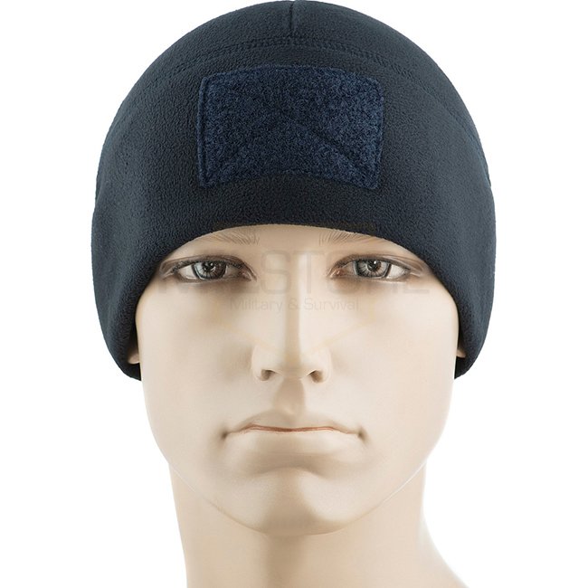M-Tac Tactical Fleece Watch Cap Beanie & Patch Panel in Dark Navy Blue - S. Lightweight, warm fleece hat for cool and cold weather. Made of moisture-wicking fleece for comfort. Low profile design for easy fit under helmets or hoods. Features Velcro panels
