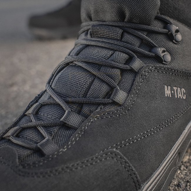 M-Tac Tactical Sneakers Patrol R - Black - 44: Affordable, high-quality tactical sneakers with genuine leather, reinforced toe, shock-absorbing polyurethane sole, abrasion-resistant rubber sole, and grip coefficient. Material: Leather & 1000D nylon.
