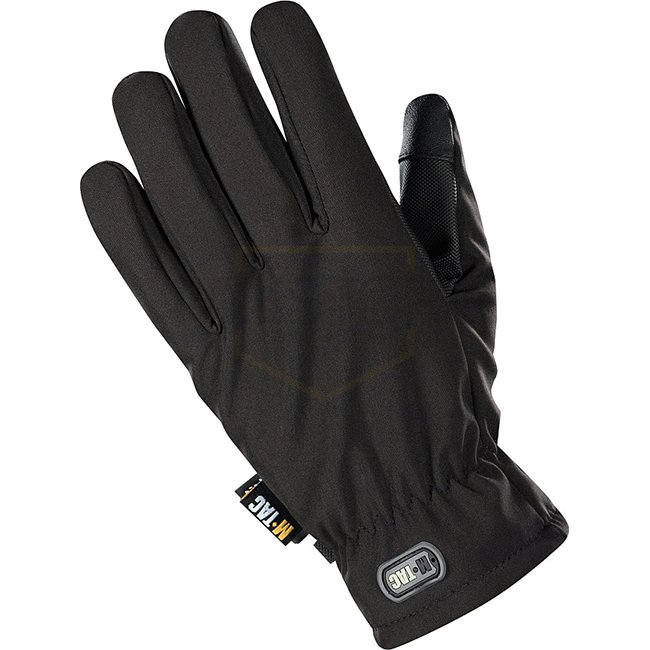 M-Tac Thinsulate Soft Shell Gloves - Black - M: Durable, elastic gloves resistant to wind, snow, and light rain. Suitable for outdoor activities in the cool season, with leather-enhanced palm area for improved grip and Touch Screen overlay on index finger