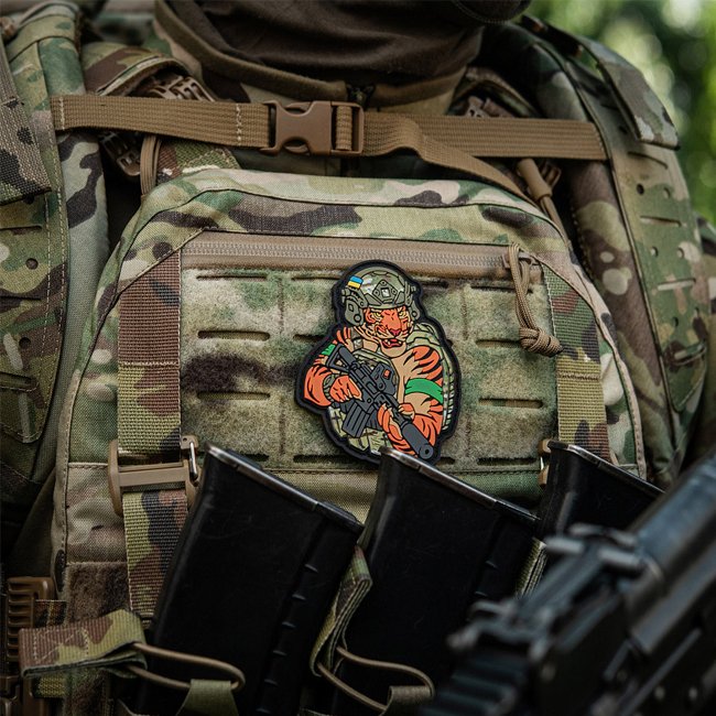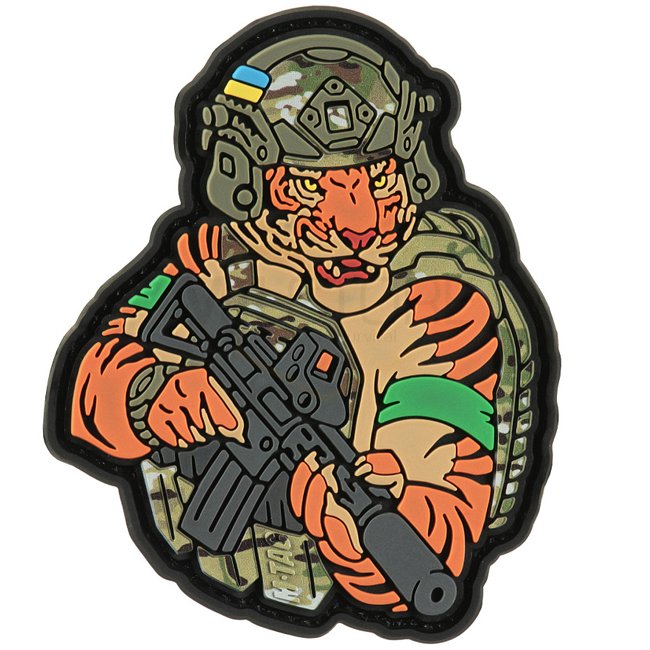 M-Tac Tiger Green Tape Rubber Patch - Multicam, made of PVC material on the front with hook surface on the back. Dimensions: 90 x 70 mm.
