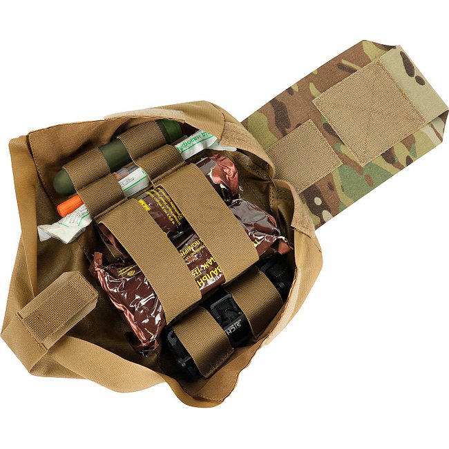 The outer pouch is made of Cordura 500D - a durable material that is resistant to abrasion and high loads. The inner side walls are elasticated nylon, thanks to which it keeps its shape. An additional fixing element is a strap that allows you to securely hold the first-aid kit, even during activity. Attaches to equipment using the MOLLE interface.