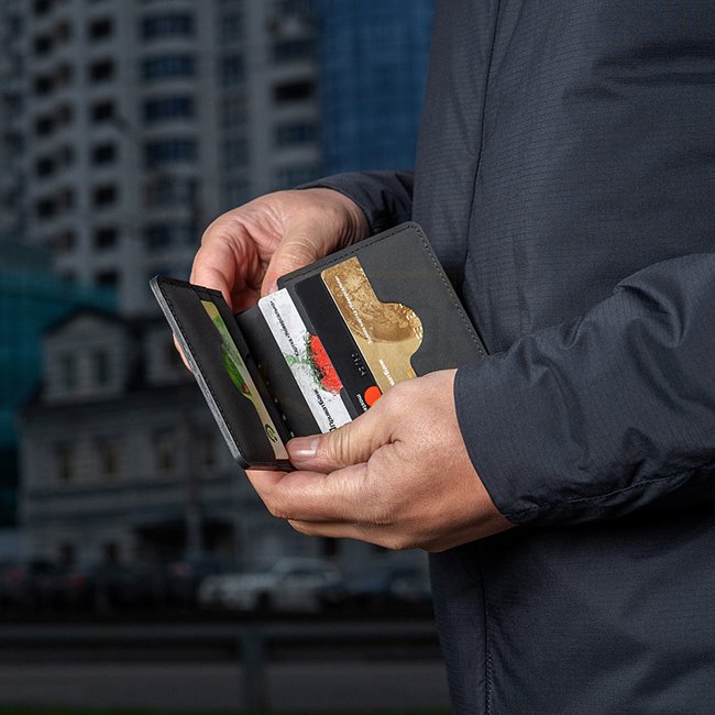 The compact and stylish Wallet Slim Elite is designed to store cash, cards, and business cards. This wallet is made from modern polymer composite, which has exceptional abrasion resistance, strength, and durability. This model has one compartment for paper bills, 6 slots for plastic cards, and a branded brass rivet. This compact accessory will be interesting to those who appreciate convenience and practicality. Due to its size, it will easily fit into your pocket.