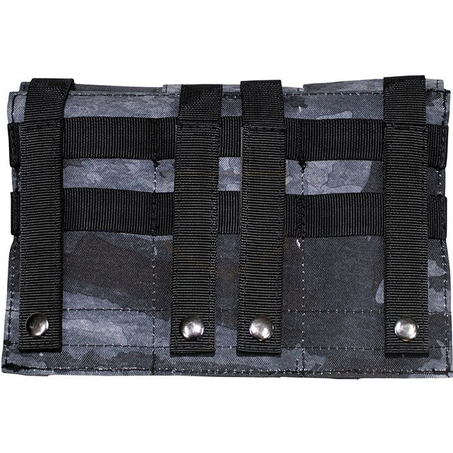 MFH Ammo Pouch Triple MOLLE - HDT Camo LE: Adjustable lid flaps, velcro, elastic loops, Molle fastening loops, press button. Dimensions: 8 x 17 x 5 cm (magazine), 25 x 19 x 5 cm (total). Material: 100% Polyester.