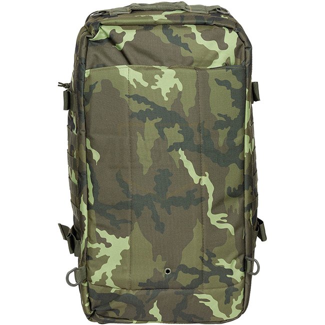 MFH Backpack Bag Travel - M95 CZ Camo with detachable shoulder strap, padded back, stowable carrying system, multiple handles, Molle attachment loops, numerous compartments and pockets, compression straps, and mesh pockets. Made of 100% Polyester. Capacit