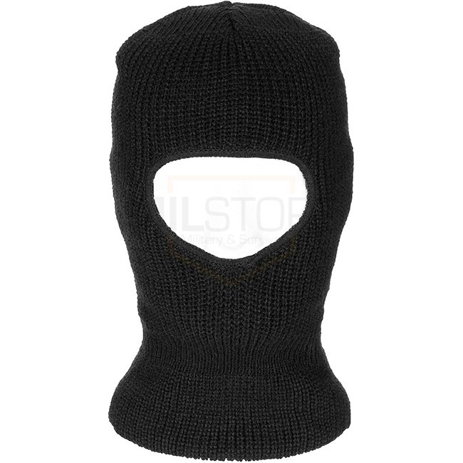 Keep warm and comfortable with the MFH Balaclava One Hole in Black. This knitted two-layer balaclava is one-size-fits-all and made from 100% Acrylic material.