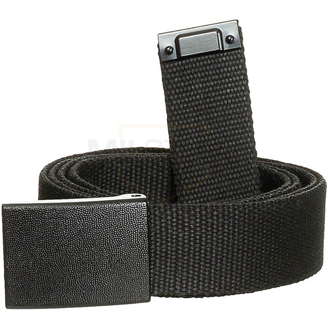 Adjustable black belt made of 100% Polyester, suitable for waist sizes up to 130 cm.