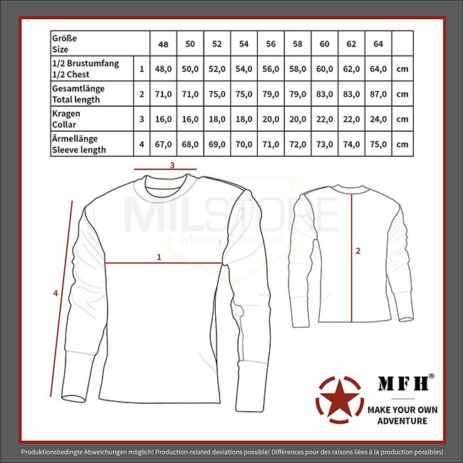 MFH BW Pullover Chest Pocket Polyacryl - Olive - 50: Military-inspired pullover featuring a patch pocket with flap and velcro on the left chest, additional pen pockets, 2 epaulettes with velcro, facing on the elbows, knitted collar, and 2 small German fla