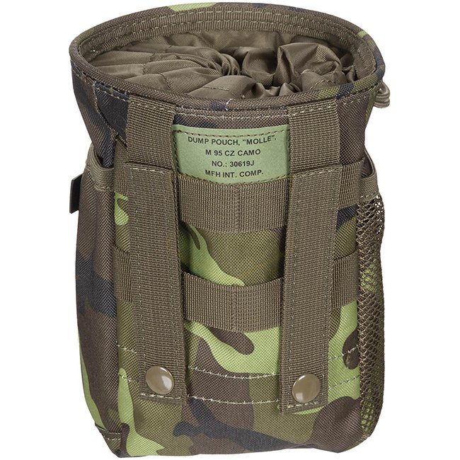 MFH Dump Pouch MOLLE - M95 CZ Camo: Large opening with drawstring closure, inner pocket, side pockets, front pocket, Molle loops. Made of 100% Polyester.