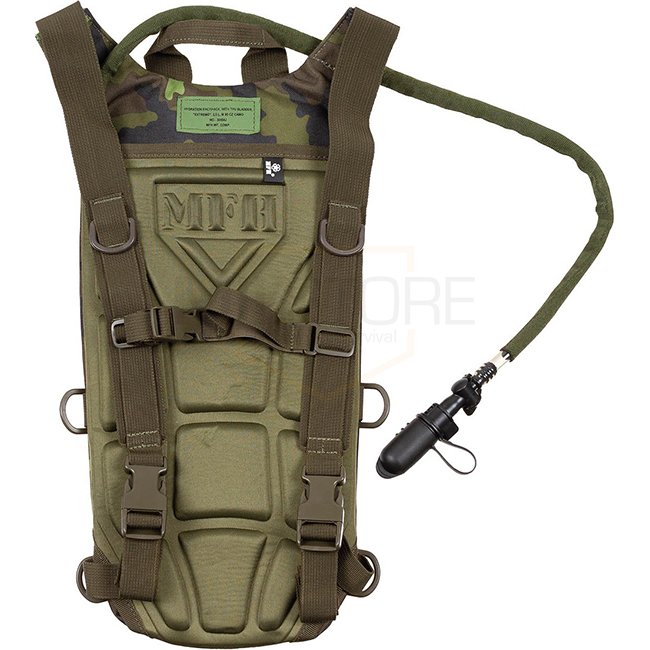 Stay hydrated on your outdoor adventures with the MFH Hydration Backpack & TPU Bladder Extreme. Features adjustable straps, chest strap, padded back for ventilation, slide-in compartment, carrying handle, D-rings, and includes a TPU bladder and mouthpiece